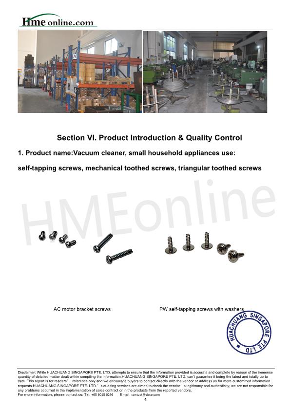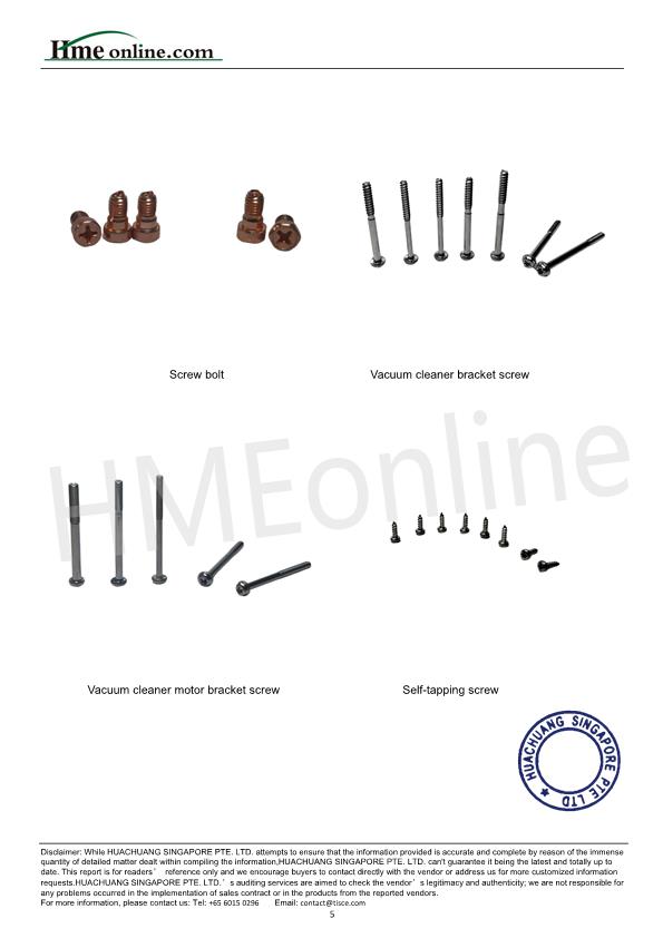 Vacuum cleaner, small household appliances use: self-tapping screws, mechanical toothed screws, triangular toothed screws